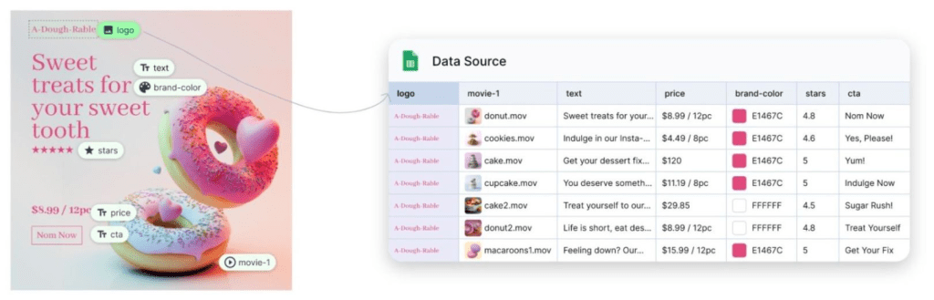 Design consistency: Creative Automation offers full control over all design elements by supporting templates created in popular Adobe design tools. This guarantees that your output aligns with your brand identity. So whether you create the main image yourself or utilise DALL-E to generate it, you have the power to determine its placement, size, animation style, and final appearance.