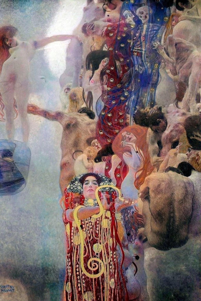 Neural networks, trained on images and text data, have also been used to recover the probable colours of parts of Gustav Klimt’s lost ceiling painting, Medicine (see go.nature.com/47rx8c2). The original, a representation of the interweaving of life and death presented to the University of Vienna in 1901, was lost during the Second World War, when the castle in which it was kept for safety was burnt down by Nazis to prevent the work from falling into the hands of Allied powers. Only preparatory sketches and photographs remain.